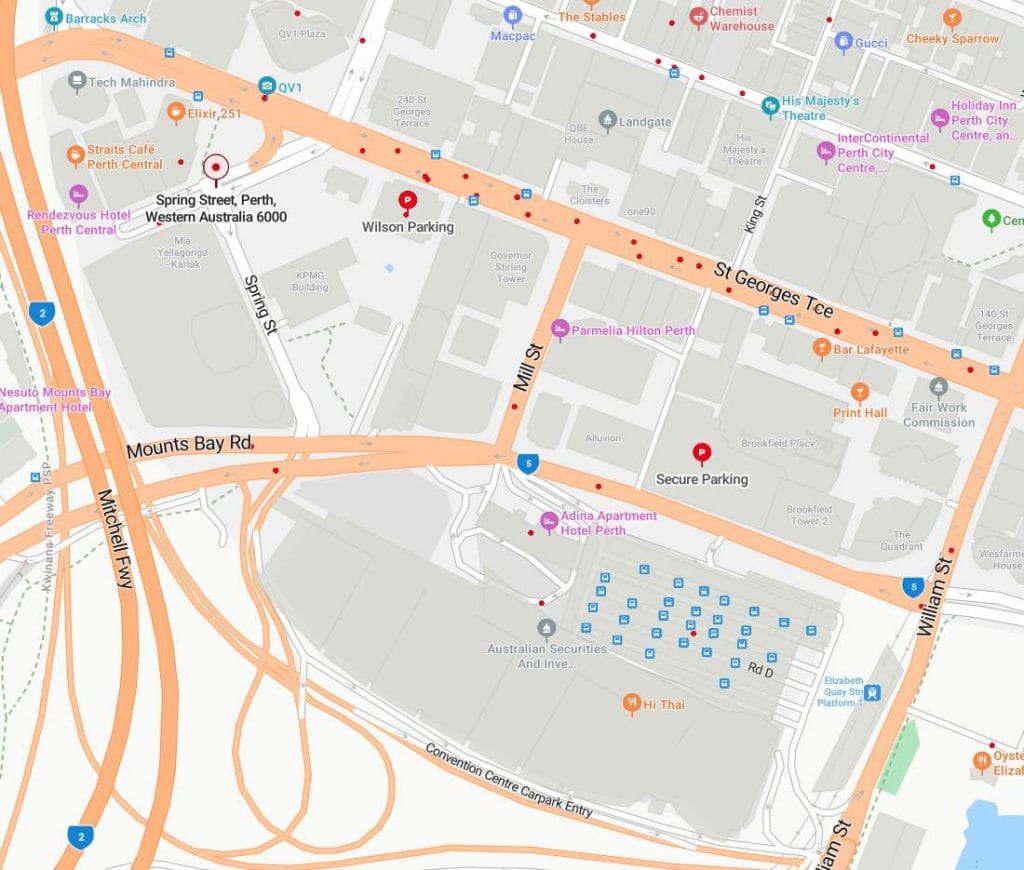 Our offices are conveniently located a 7-minute walk from Elizabeth Quay Train Station & Bus port or 13 minutes from the Perth Train Station.