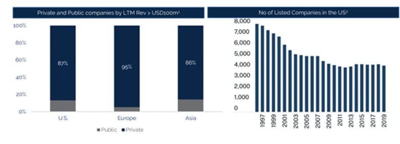 Did you know that 87% of US companies with more than USD100m in annual revenue are privately owned? And the number of listed companies in the US has almost halved over the past 30 years.